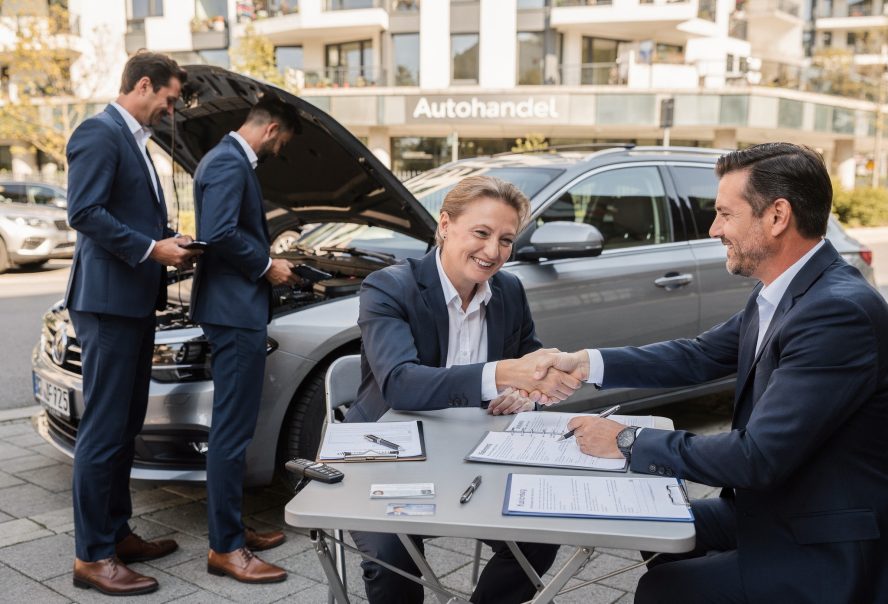 Kommt es zur Einigung, folgt die physische Prüfung des Fahrzeugs. Diese dient ausschließlich der Bestätigung der gemachten Angaben. Anschließend wird ein schriftlicher Kaufvertrag abgeschlossen, der den Verkäufer rechtlich absichert.